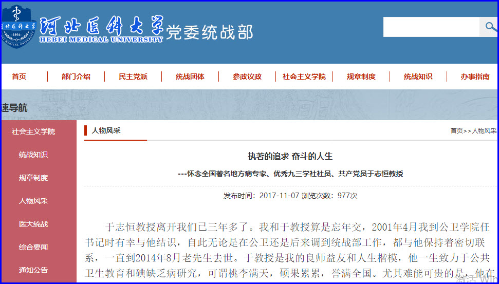 有人说于志恒已经去世了,死者为大,不要批评他了。尽管于志恒已经去世了,但是他在补碘问题上的严重错误是必须清算的,否则后人还要受害。在原则性的学术观点上是决不能“死者为大”的,危害国家和人民健康的理论和实践必须明辨是非。