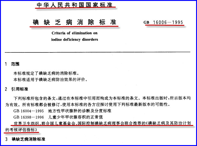 这个标准实际是完全照搬ISO为中国推行强制全民补碘的标准。