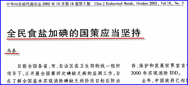 1、马泰明明知道“我国有三分之一的人口居住在缺碘地区”,为了落实美国对中国推行强制全民补碘的方案却说“大量的流行病学资料证明我国绝大多数地区外环境缺碘”