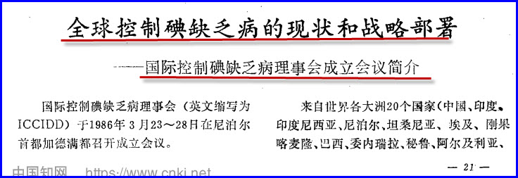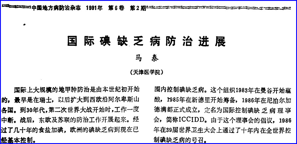 【论文题目】《国际碘缺乏病防治进展》