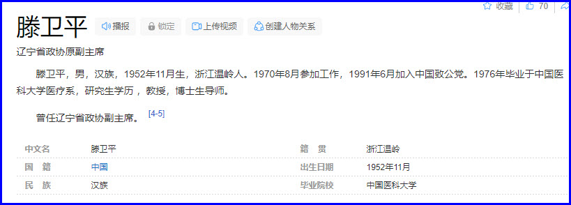 滕卫平是全国著名的内分泌医学教授,又是政府官员(曾任辽宁省副省长)