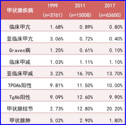 2、《全民加碘20年后,中国甲状腺疾病变化明显》,但上述九项数据中有明显变化的只有“亚临床甲亢”、“亚临床甲减”和“甲状腺结节”,不足以证明“20年来中国甲状腺疾病明显变化”