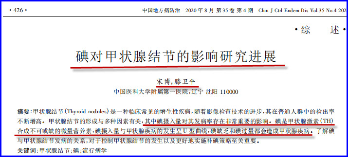【论文题目】《碘对甲状腺结节的影响研究进展》