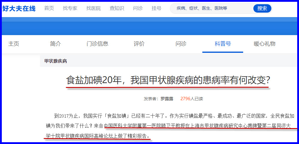 1、文章题目是《全民加碘20年后,中国甲状腺疾病变化明显》,表格的数据无疑应该是全国补碘前的数据与现在的数据比较,文章开始说“1996到2016的20年间,我国经历了‘全民食盐加碘-下调碘浓度-各省灵活选择’的政策沿革”。但这里的证据却是1999年到2017年的数据,我国实际推行的强制全民补碘的时间是1995年,你用已经补碘4年的1999年的数据证明20年的甲状腺疾病变化明显,明显是错误的。