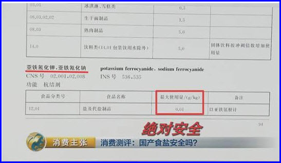 除了国家标准允许食盐中亚铁氰化钾超标24%以外,实际销售的食盐中不存在亚铁氰化钾超标吗?实际在销售的食盐中也存在超标问题,而且常常是更大的超标,达到毒盐的标准了。