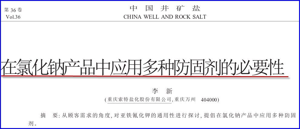 【论文题目】《在氯化钠产品中应用多种防固剂的必要性》