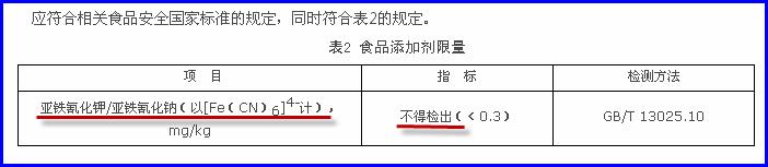 因此在这个证据面前,无论中央电视台如何高喊食盐里添加的亚铁氰化钾无害,无论专家怎么说各种理由说食盐里的亚铁氰化钾十分安全,但仅凭绿色食盐里不得检出亚铁氰化钾一条,就让中央电视台哑口无言。检出(<0.3).