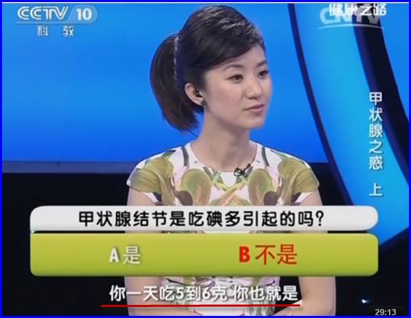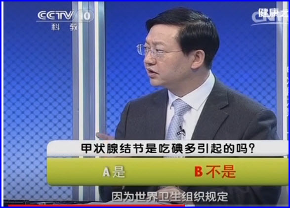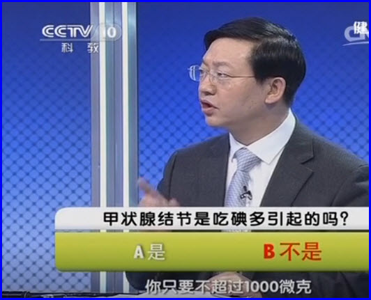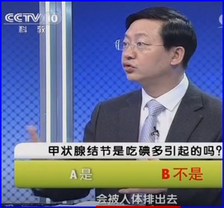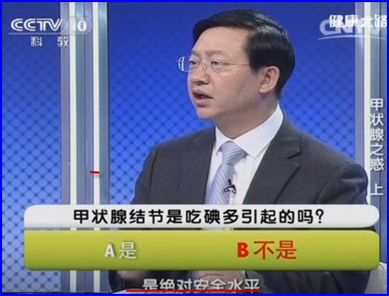 “也发现甲状腺结节会增加,这是个矛盾的结果。你想高碘也会结节,低碘也会结节,这到底有没有关系呢?事实上碘在人体来讲它是一个非常非常稳定的一种状态”