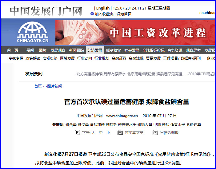 但是陈祖培等国际控制碘缺乏病理事会的专家们大肆公开叫嚷“全民食盐加碘不仅有利于碘缺乏地区的人群,并且对碘充足的人群也没有副作用。”,这种说法是明显的错误,但是在伟大的中国却天天宣传。