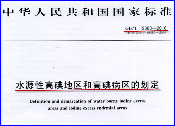 【文章题目】《GBT 19380-2016 水源性高碘地区和地方性高碘甲状腺肿病区的划定》