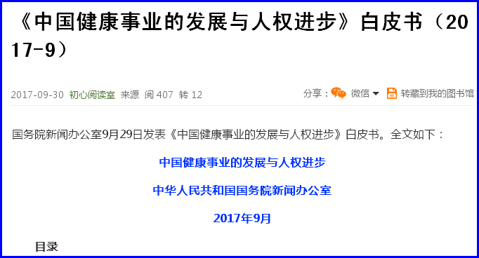 【文章题目】《《中国健康事业的发展与人权进步》白皮书2017-9》