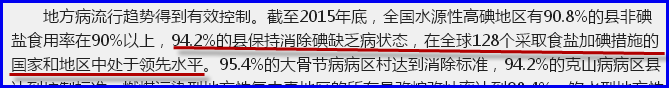 “截至2015年底,全国水源性高碘地区有90.8%的县非碘盐食用率在90%以上,”
