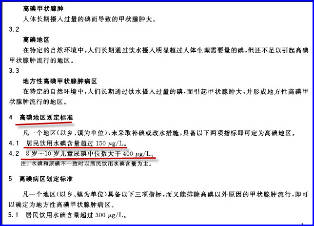由于高碘区被强制全民补碘,在我们的质疑下国家卫健委2003年公布了第一个高碘区标准