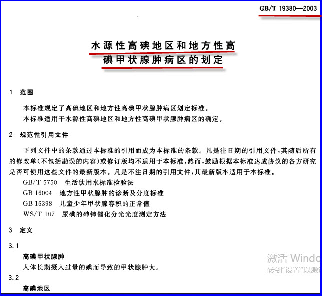 【文章题目】《GB 19380-2003-T 水源性高碘地区和地方性高碘甲状腺肿病区的划定》