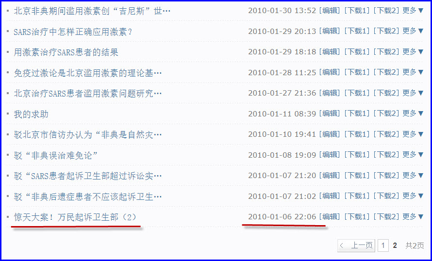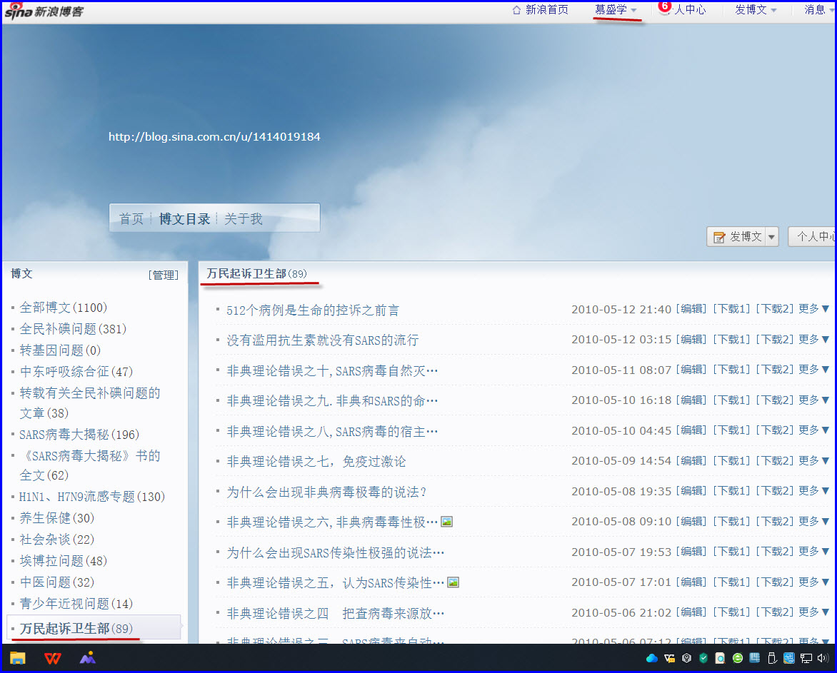 这个记录现在在新浪博客里还可以找到,证明我在2010年1月6日就开始发出要起诉卫生部的一系列文章。