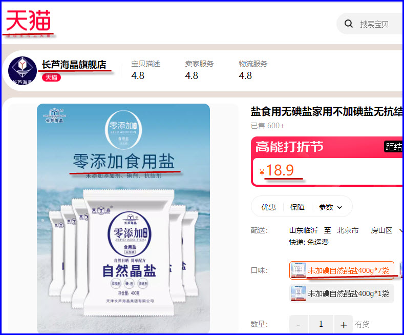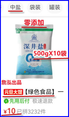 如今至少在淘宝、拼多多里可以看到大量无添加的食盐在大量销售,价格也很便宜。北京的各大商场无添加的食盐也在热卖。拼多多和淘宝已经是深入乡村的直购平台,拼多多和淘宝敞开廉价销售无添加食盐的结果是中国第二大国策的倒台的最明显的标志。这就是北京法院判我败诉的结果,这就是我起诉国家卫健委的副产品,但是这个副产品的意义却是远远大于起诉添加亚铁氰化钾的效果。