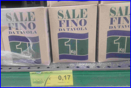 欧美的平民吃什么盐呢?尽管欧美的食品价格较贵,但普通的食盐却非常便宜。下图是法国巴黎郊区一个也不算太小的超市里(大约有200平方米),只有一种盐。纯天然的,无任何添加剂,1公斤,仅0.4欧元,合人民币3.2元。