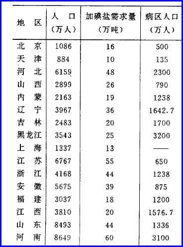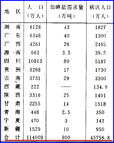 “全国人口114009万人,需要碘盐800万吨,病区人口45756.8万人”