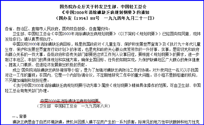 【论文题目】《中国2000年消除碘缺乏病规划纲要》