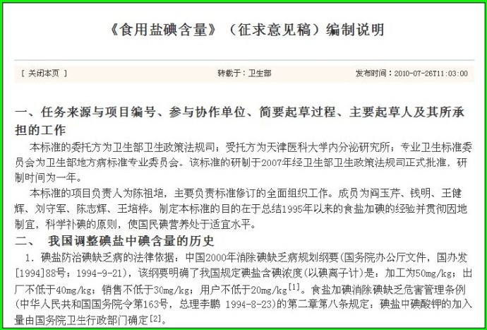 【论文题目】《食用盐碘含量》(征求意见稿)编制说明