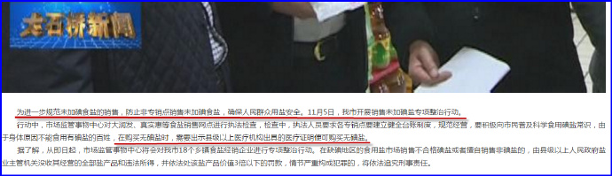 这里为什么敢用“绝对”这个词,是因为地球上任何人看到下面的证据,没有人不承认中国的补碘确确实实是强制的。