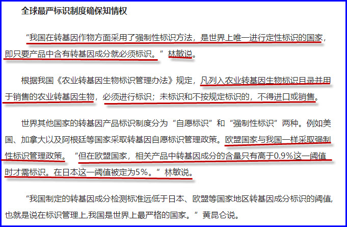 一、农业部专家们说中国转基因食品标识是全世界最严格的