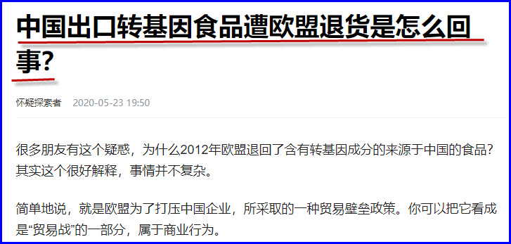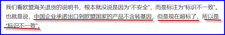 3、既然中国转基因食品标识全世界最严,为什么出口欧盟的食品经常因查出含转基因成分被退货?