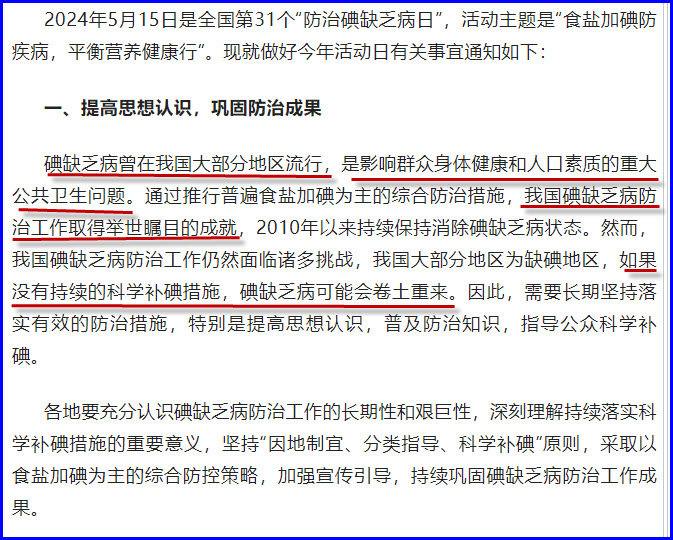 今天是中国第31个防治碘缺乏病活动日,是全世界唯一为防治碘缺乏病特设的国家级纪念日,实际是一个丧权辱国纪念日。为了说明真相,本人从今天开始陆续公开发表《中国补碘真情录》,揭露其中的秘密!