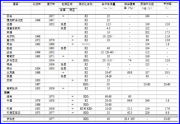 碘超过足够的国家总人口是23亿3443万人;其中食用碘盐的人口是20亿2050万人。