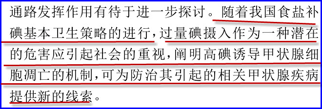 【证据来源】《甲状腺疾病的诊断与治疗,甲状腺疾病与碘》医师进修杂志,2003年11月第26卷第11期