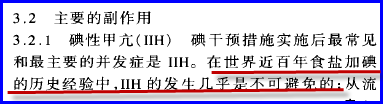 WH0 曾提出,当尿碘中位数为200~299μg/L 时,易感个体有发生IIH 的危险;当尿碘中位数≥300 μg/L 时,有发生IIH 的危险。