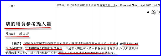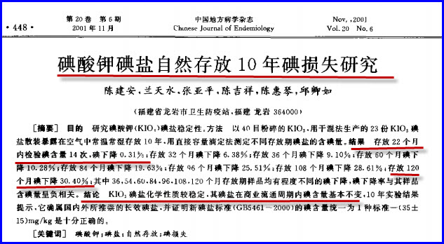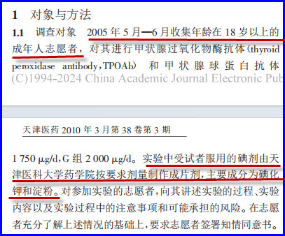 【说明】上述论文作者全部是医学专家,明知碘酸钾是比碘化钾毒性大很多的药品,明知中国用碘酸钾补碘,为什么要“挂羊头卖狗肉“呢?用碘化钾的实验结果代替碘酸钾的结果呢?就是要掩盖碘酸钾对中国人的伤害!