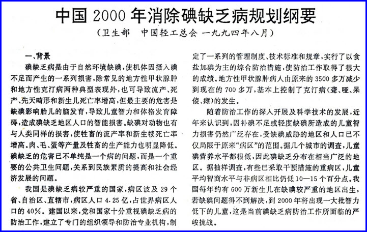 【证据来源】《中国2000年消除碘缺乏病规划纲要》