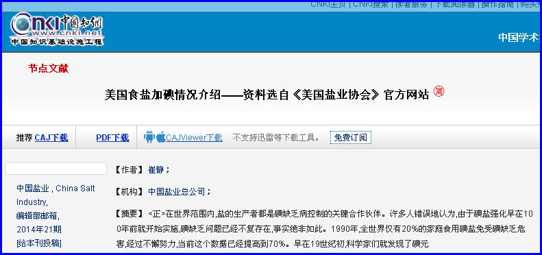 【论文题目】《美国食盐加碘情况介绍——资料选自《美国盐业协会》官方网站》