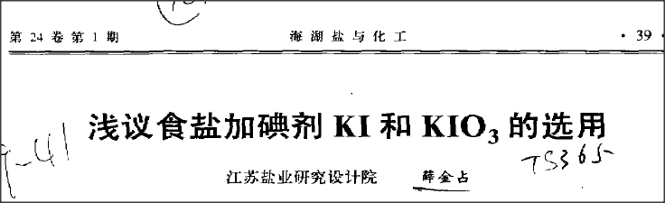 2、【论文题目】《浅议食盐加碘剂KI和KIO3的选用》