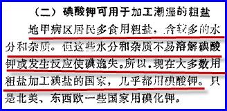 “现在大多数用粗盐加工碘盐的国家,几乎都用碘酸钾。只是北美、东西欧一些国家用碘化钾”