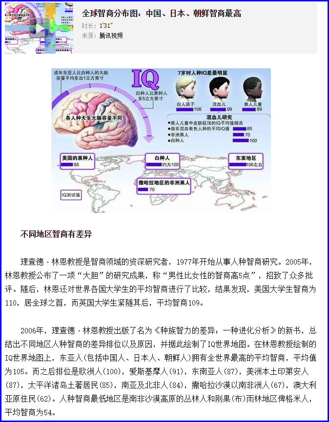 上面的证据证明中国人的智商在全世界范围内是高的,智商高的国家不可能是全世界碘缺乏病流行最严重的国家。