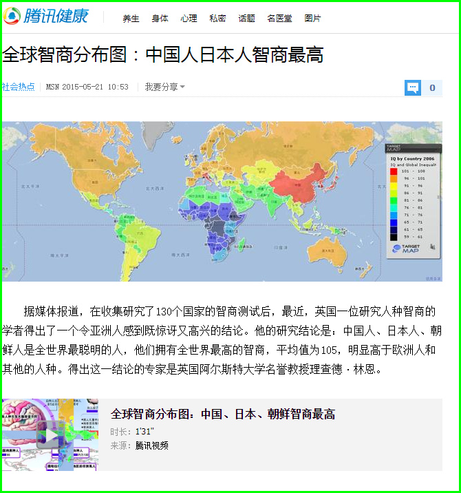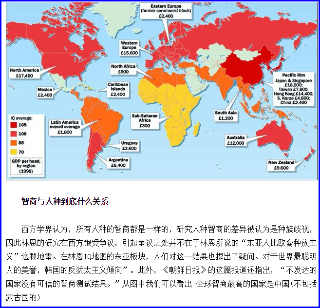 第三节 全球智商分布图:中国、日本朝鲜智商最高