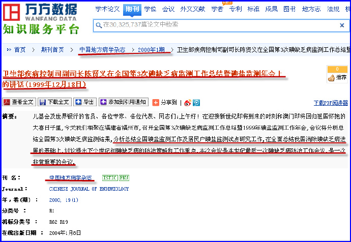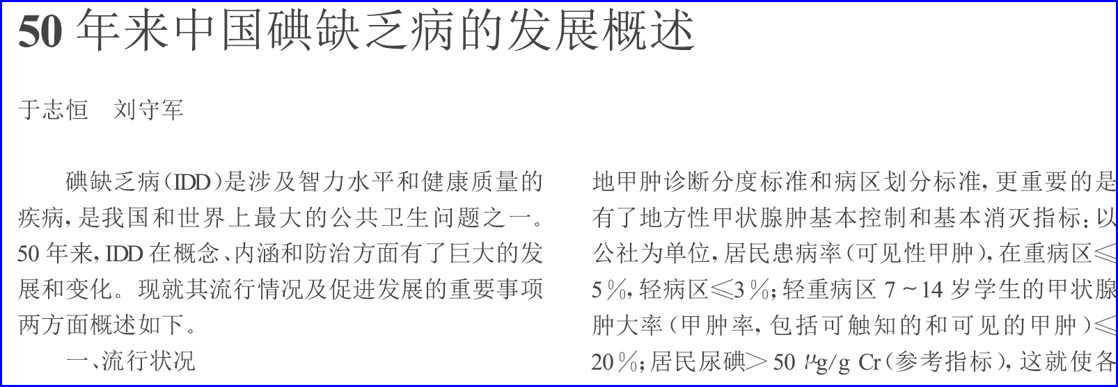 【论文题目】《50年中国碘缺乏病的发展概述》