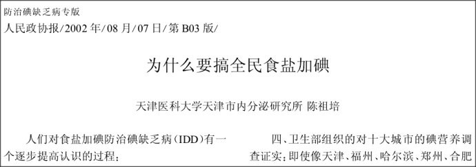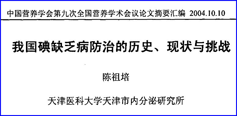 【论文题目】《我国碘缺乏病防治的历史现状与挑战》