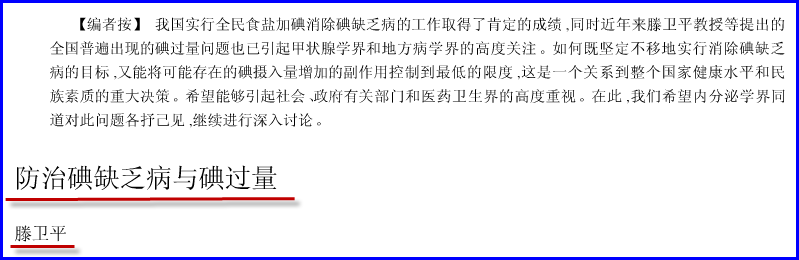 总之,为了完成强制全民补碘的计划,为了强制全民补碘合情合理,卫生部地方病专家做了大量的工作,到1996年达到了全国都需要补碘的任务。