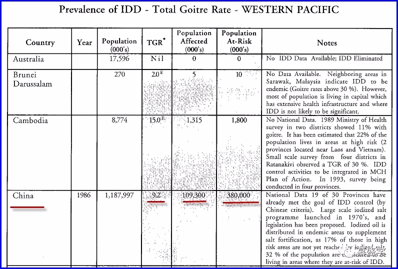 【说明】中国是发展中国家,1995年卫生部仅在这个问题上与发达国家接轨,采用了发达国家的儿童甲状腺肿大率标准,把儿童童甲状腺肿大率>5就定义为缺碘。陈祖培仅这一招就把全国很多儿童甲状腺肿大率高于5%的省市打入缺碘大军。